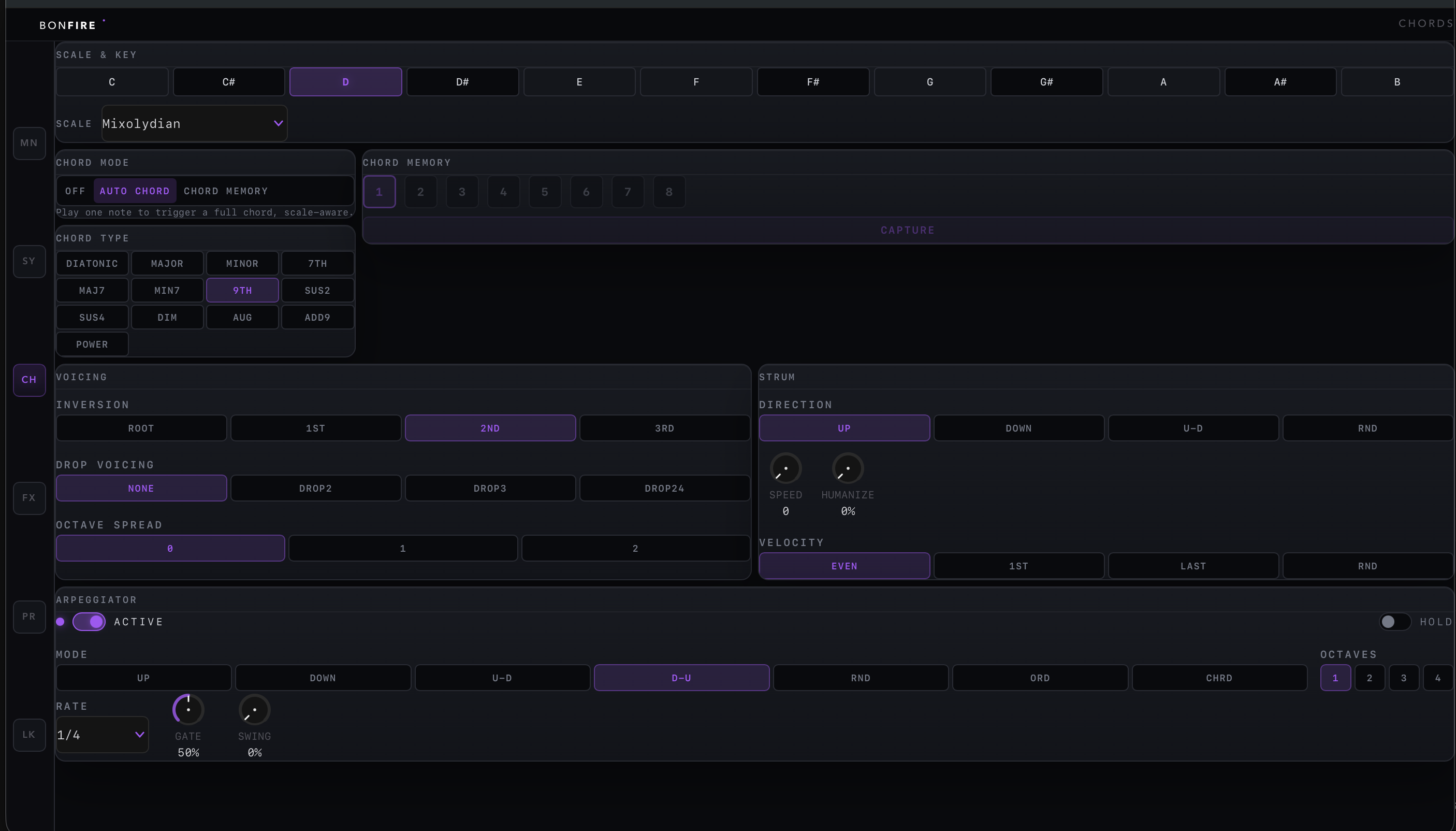 In DevelopmentPolyphonic chord synthesizer with intelligent voicing, triple oscillators, and inter-plugin sync.